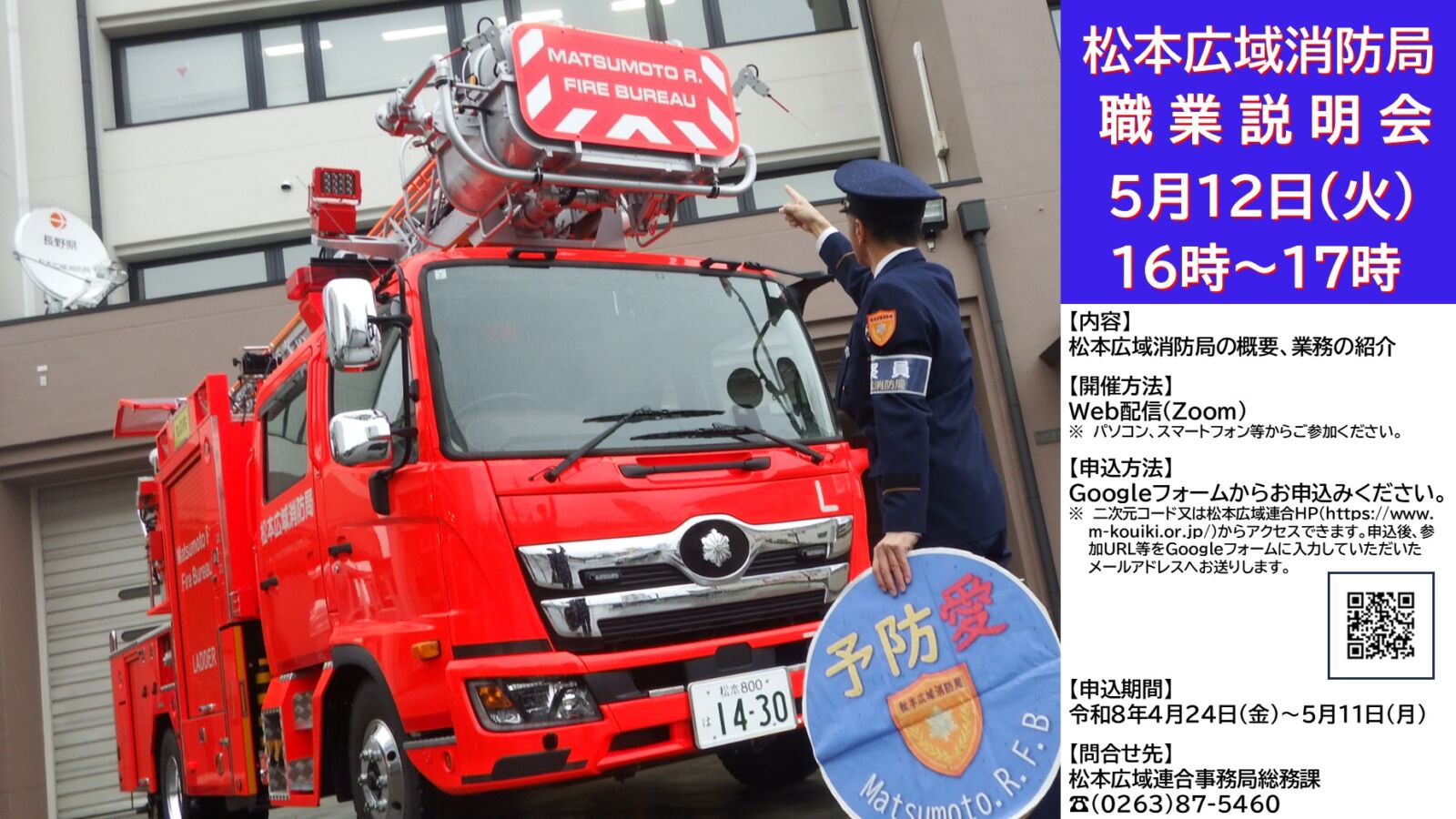 【5月12日(火)16時~】松本広域消防局職業説明会(Web配信)を開催します!